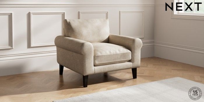 7.0.3 Buy Palermo Relaxed Sit Armchair Plush Chenille Light Natural Tapered - Dark from the Next UK online shop Click here to use our accessible website