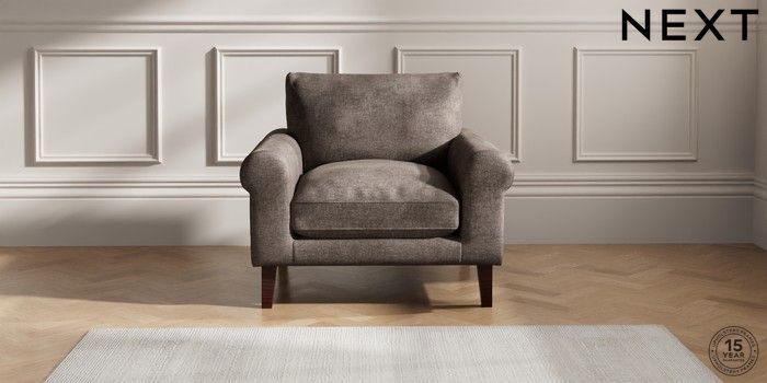 6.12.1 Buy Palermo Relaxed Sit Armchair Plush Chenille Mink Brown Tapered - Dark Brown from the Next UK online shop Click here to use our accessible website