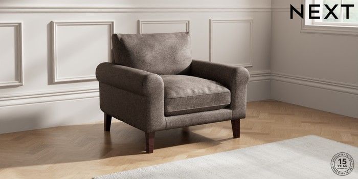 7.0.3 Buy Palermo Relaxed Sit Armchair Plush Chenille Mink Brown Tapered - Dark Brown from the Next UK online shop Click here to use our accessible website