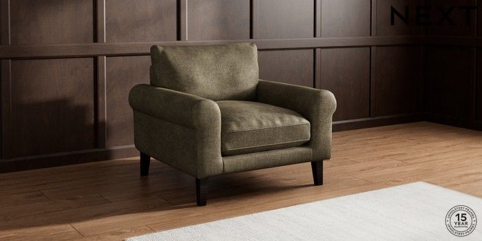7.0.3 Buy Palermo Relaxed Sit Armchair Plush Chenille Moss Green Tapered - Dark from the Next UK online shop Click here to use our accessible website