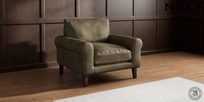 7.0.3 Buy Palermo Relaxed Sit Armchair Plush Chenille Moss Green Tapered - Dark Brown from the Next UK online shop Click here to use our accessible website