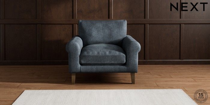 6.12.1 Buy Palermo Relaxed Sit Armchair Plush Chenille Slate Blue Tapered - Mid from the Next UK online shop Click here to use our accessible website