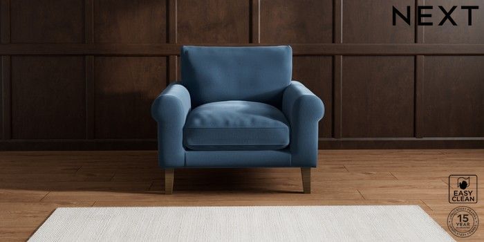 6.12.1 Buy Palermo Relaxed Sit Armchair Plush Velvet Easy Clean Airforce Blue Tapered - Mid from the Next UK online shop Click here to use our accessible website