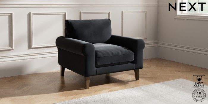 7.0.3 Buy Palermo Relaxed Sit Armchair Plush Velvet Easy Clean Charcoal Grey Tapered - Mid from the Next UK online shop Click here to use our accessible website