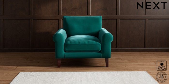 6.12.1 Buy Palermo Relaxed Sit Armchair Plush Velvet Easy Clean Juniper Green Tapered - Dark Brown from the Next UK online shop Click here to use our accessible website