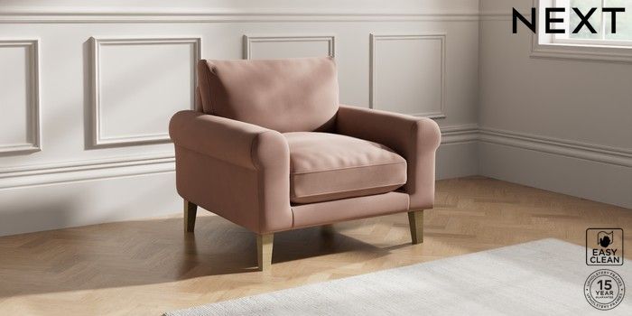 7.0.3 Buy Palermo Relaxed Sit Armchair Plush Velvet Easy Clean Mid Natural Tapered - Light from the Next UK online shop Click here to use our accessible website