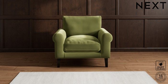 6.12.1 Buy Palermo Relaxed Sit Armchair Plush Velvet Easy Clean Mid Olive Green Tapered - Dark from the Next UK online shop Click here to use our accessible website
