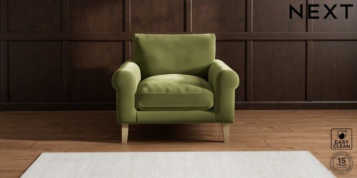 6.12.1 Buy Palermo Relaxed Sit Armchair Plush Velvet Easy Clean Mid Olive Green Tapered - Light from the Next UK online shop Click here to use our accessible website