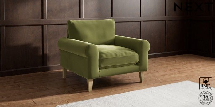 7.0.3 Buy Palermo Relaxed Sit Armchair Plush Velvet Easy Clean Mid Olive Green Tapered - Light from the Next UK online shop Click here to use our accessible website