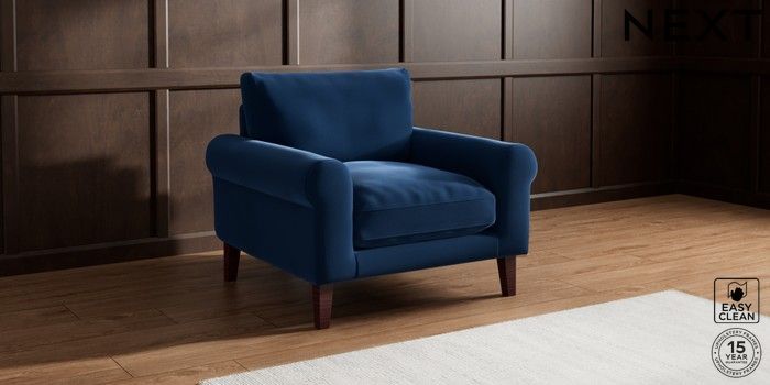 7.0.3 Buy Palermo Relaxed Sit Armchair Plush Velvet Easy Clean Navy Blue Tapered - Dark Brown from the Next UK online shop Click here to use our accessible website