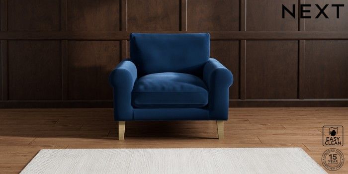 6.12.1 Buy Palermo Relaxed Sit Armchair Plush Velvet Easy Clean Navy Blue Tapered - Light from the Next UK online shop Click here to use our accessible website