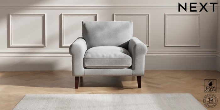 6.12.1 Buy Palermo Relaxed Sit Armchair Tweedy Blend Easy Clean Light Silver Grey Tapered - Dark Brown from the Next UK online shop Click here to use our accessible website
