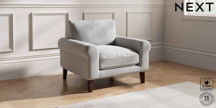 7.0.3 Buy Palermo Relaxed Sit Armchair Tweedy Blend Easy Clean Light Silver Grey Tapered - Dark Brown from the Next UK online shop Click here to use our accessible website