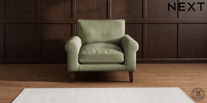 6.12.1 Buy Palermo Relaxed Sit Armchair Tweedy Chenille Mid Moss Green Tapered - Dark Brown from the Next UK online shop Click here to use our accessible website