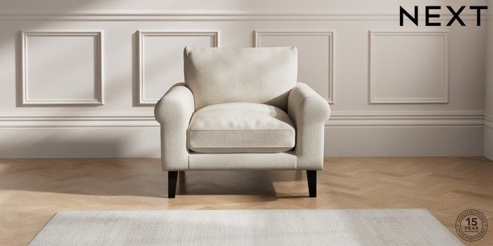 6.12.1 Buy Palermo Relaxed Sit Armchair Tweedy Chenille Oyster Tapered - Dark from the Next UK online shop Click here to use our accessible website