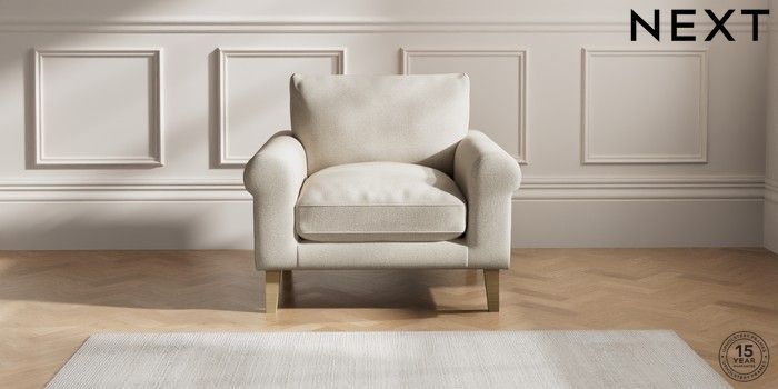 6.12.1 Buy Palermo Relaxed Sit Armchair Tweedy Chenille Oyster Tapered - Light from the Next UK online shop Click here to use our accessible website