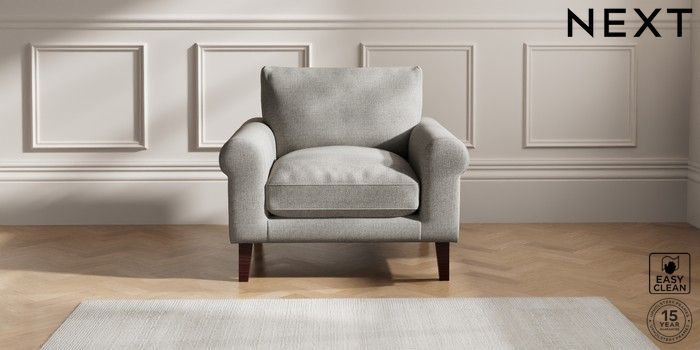 6.12.1 Buy Palermo Relaxed Sit Armchair Woven Chenille Easy Clean Light Grey Tapered - Dark Brown from the Next UK online shop Click here to use our accessible website