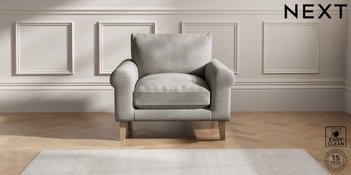 6.12.1 Buy Palermo Relaxed Sit Armchair Woven Chenille Easy Clean Light Grey Tapered - Light from the Next UK online shop Click here to use our accessible website