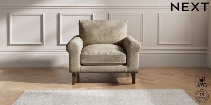 6.12.1 Buy Palermo Relaxed Sit Armchair Woven Chenille Easy Clean Mid Natural Tapered - Mid from the Next UK online shop Click here to use our accessible website