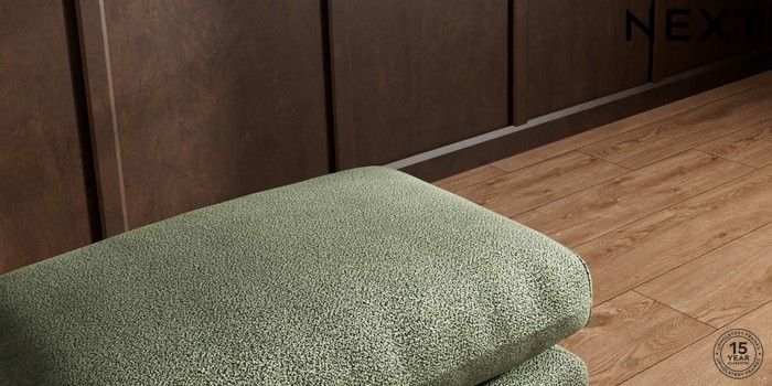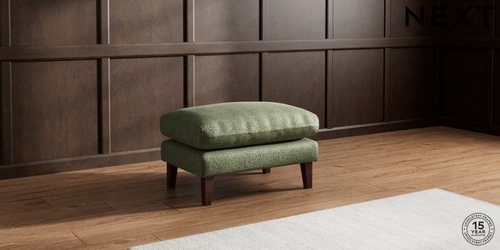 7.0.3 Buy Palermo Relaxed Sit Footstool Boucle Chenille Dark Moss Green Tapered - Dark Brown from the Next UK online shop Click here to use our accessible website