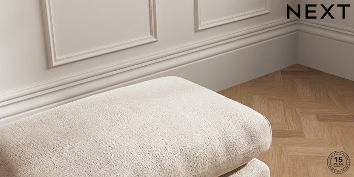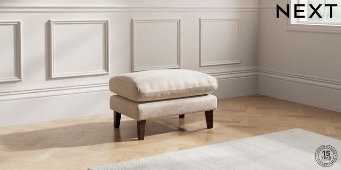 7.0.3 Buy Palermo Relaxed Sit Footstool Cotswold Chenille Light Natural Tapered - Dark Brown from the Next UK online shop Click here to use our accessible website