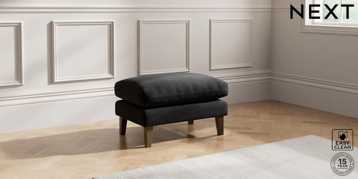 7.0.3 Buy Palermo Relaxed Sit Footstool Fine Chenille Easy Clean Black Tapered - Mid from the Next UK online shop Click here to use our accessible website
