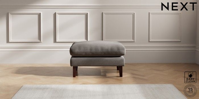 6.12.1 Buy Palermo Relaxed Sit Footstool Fine Chenille Easy Clean Dark Smoke Grey Tapered - Dark Brown from the Next UK online shop Click here to use our accessible website