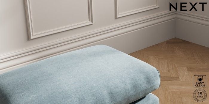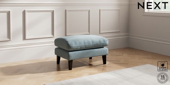 7.0.3 Buy Palermo Relaxed Sit Footstool Fine Chenille Easy Clean Mid Blue Tapered - Dark from the Next UK online shop Click here to use our accessible website