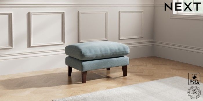7.0.3 Buy Palermo Relaxed Sit Footstool Fine Chenille Easy Clean Mid Blue Tapered - Dark Brown from the Next UK online shop Click here to use our accessible website