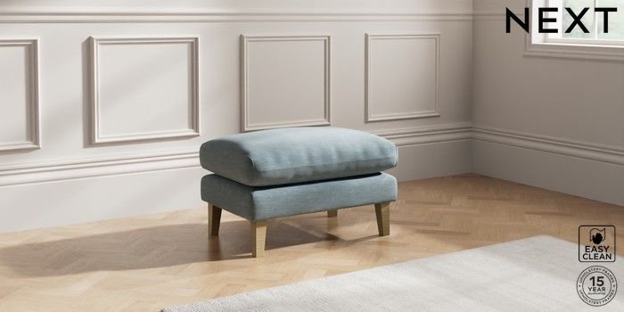 7.0.3 Buy Palermo Relaxed Sit Footstool Fine Chenille Easy Clean Mid Blue Tapered - Light from the Next UK online shop Click here to use our accessible website
