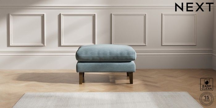 6.12.1 Buy Palermo Relaxed Sit Footstool Fine Chenille Easy Clean Mid Blue Tapered - Mid from the Next UK online shop Click here to use our accessible website