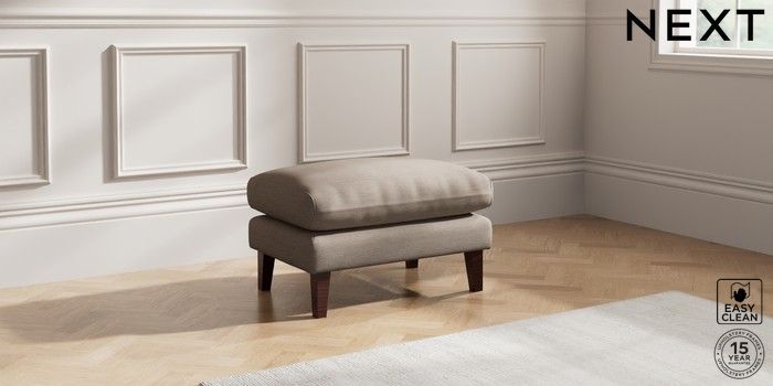 7.0.3 Buy Palermo Relaxed Sit Footstool Fine Chenille Easy Clean Mid Taupe Brown Tapered - Dark Brown from the Next UK online shop Click here to use our accessible website