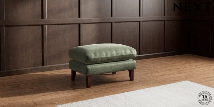 7.0.3 Buy Palermo Relaxed Sit Footstool Luxe Chenille Mid Green Tapered - Dark Brown from the Next UK online shop Click here to use our accessible website