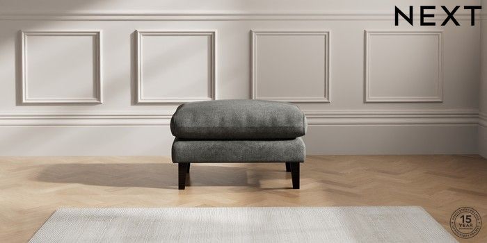 6.12.1 Buy Palermo Relaxed Sit Footstool Plush Chenille Dark Grey Tapered - Dark from the Next UK online shop Click here to use our accessible website