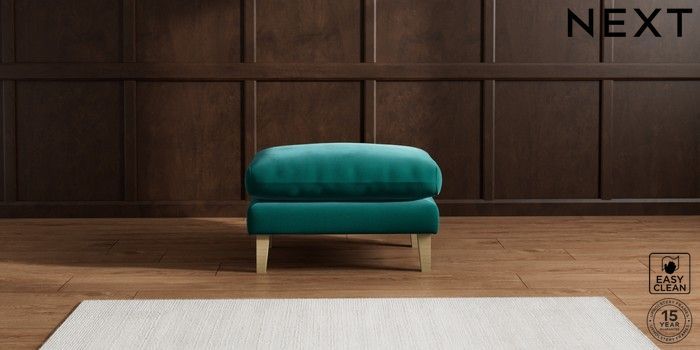 6.12.1 Buy Palermo Relaxed Sit Footstool Plush Velvet Easy Clean Juniper Green Tapered - Light from the Next UK online shop Click here to use our accessible website