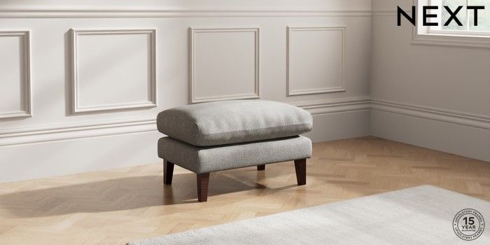 7.0.3 Buy Palermo Relaxed Sit Footstool Tweedy Chenille Mid Grey Tapered - Dark Brown from the Next UK online shop Click here to use our accessible website