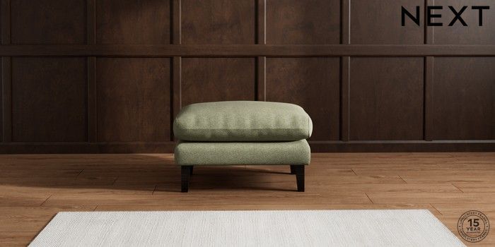 6.12.1 Buy Palermo Relaxed Sit Footstool Tweedy Chenille Mid Moss Green Tapered - Dark from the Next UK online shop Click here to use our accessible website