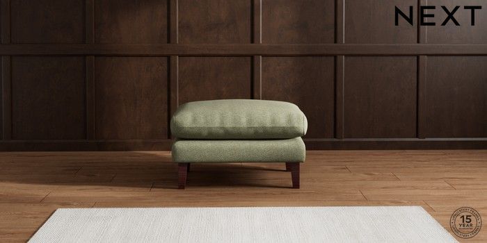 6.12.1 Buy Palermo Relaxed Sit Footstool Tweedy Chenille Mid Moss Green Tapered - Dark Brown from the Next UK online shop Click here to use our accessible website