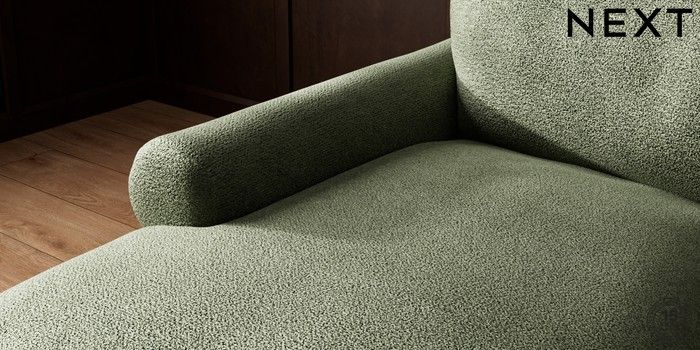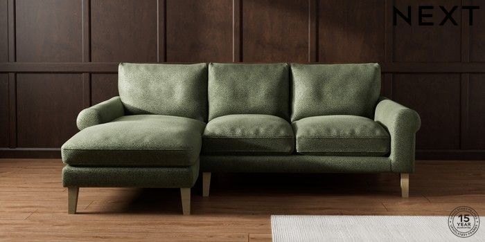 7.0.3 Buy Palermo Relaxed Sit Medium Sofa Chaise - Left Hand Boucle Chenille Dark Moss Green Tapered - Light from the Next UK online shop Click here to use our accessible website