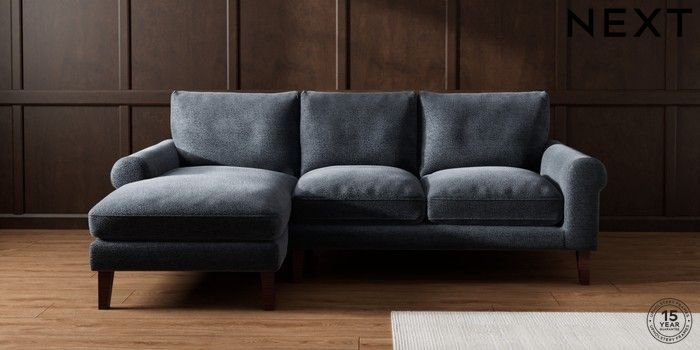 7.0.3 Buy Palermo Relaxed Sit Medium Sofa Chaise - Left Hand Boucle Chenille Dark Slate Blue Tapered - Dark Brown from the Next UK online shop Click here to use our accessible website