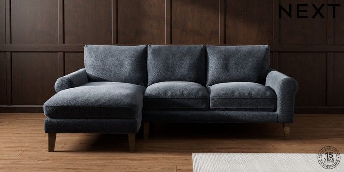 7.0.3 Buy Palermo Relaxed Sit Medium Sofa Chaise - Left Hand Boucle Chenille Dark Slate Blue Tapered - Mid from the Next UK online shop Click here to use our accessible website