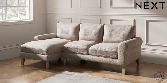 6.12.1 Buy Palermo Relaxed Sit Medium Sofa Chaise - Left Hand Boucle Chenille Light Natural Tapered - Light from the Next UK online shop Click here to use our accessible website