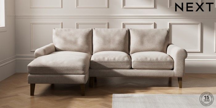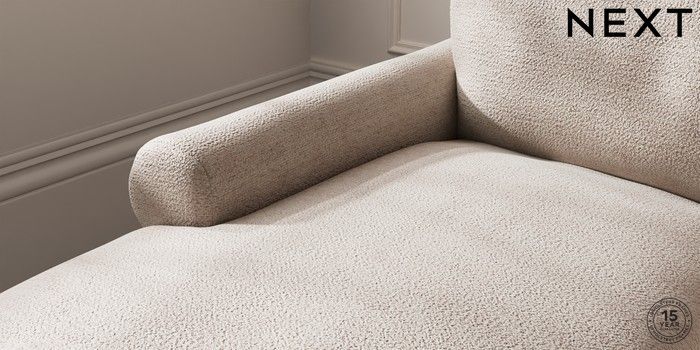 7.0.3 Buy Palermo Relaxed Sit Medium Sofa Chaise - Left Hand Boucle Chenille Light Natural Tapered - Mid from the Next UK online shop Click here to use our accessible website
