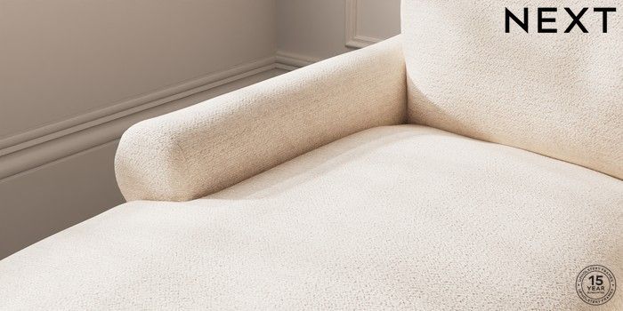 7.0.3 Buy Palermo Relaxed Sit Medium Sofa Chaise - Left Hand Boucle Chenille Oyster Tapered - Dark from the Next UK online shop Click here to use our accessible website