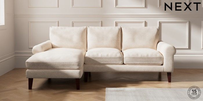 7.0.3 Buy Palermo Relaxed Sit Medium Sofa Chaise - Left Hand Boucle Chenille Oyster Tapered - Dark Brown from the Next UK online shop Click here to use our accessible website