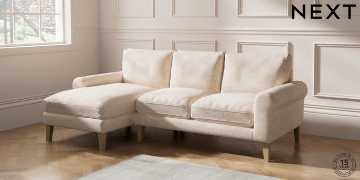6.12.1 Buy Palermo Relaxed Sit Medium Sofa Chaise - Left Hand Boucle Chenille Oyster Tapered - Light from the Next UK online shop Click here to use our accessible website