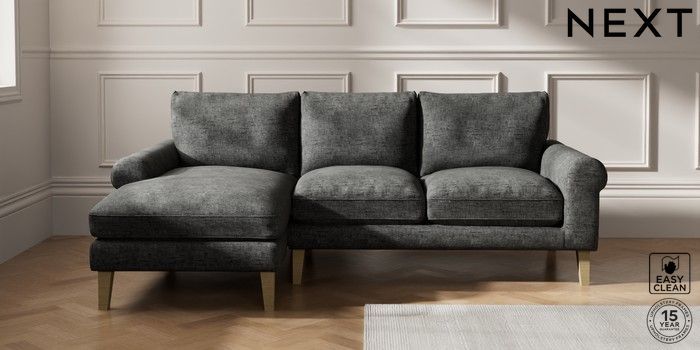 7.0.3 Buy Palermo Relaxed Sit Medium Sofa Chaise - Left Hand Boucle Weave Easy Clean Charcoal Grey Tapered - Light from the Next UK online shop Click here to use our accessible website