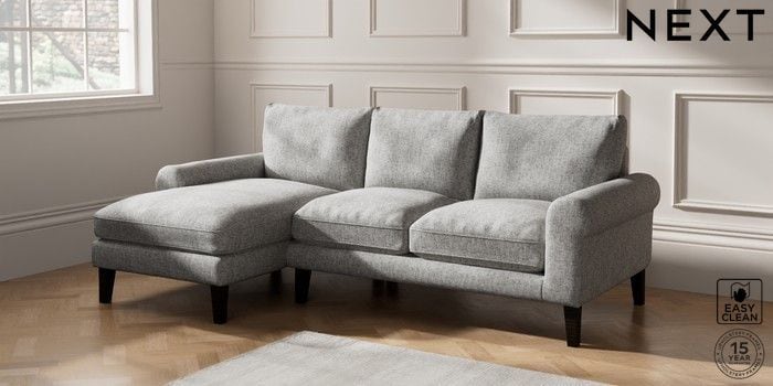6.12.1 Buy Palermo Relaxed Sit Medium Sofa Chaise - Left Hand Chunky Boucle Easy Clean Light Grey Tapered - Dark from the Next UK online shop Click here to use our accessible website