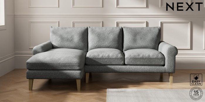 7.0.3 Buy Palermo Relaxed Sit Medium Sofa Chaise - Left Hand Chunky Boucle Easy Clean Mid Grey Tapered - Light from the Next UK online shop Click here to use our accessible website