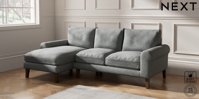 6.12.1 Buy Palermo Relaxed Sit Medium Sofa Chaise - Left Hand Chunky Boucle Easy Clean Mid Grey Tapered - Mid from the Next UK online shop Click here to use our accessible website
